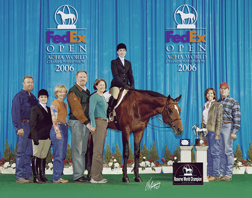 Once the team got ‘Al’ home to Arizona, he got some time off, and showed at the Scottsdale Fall Championship Show during his three year old year. “When he was four years old, I got to show him in Select, and later Sue Ellen Vickery (Kaven) rode him to a reserve world championship at the AQHA World Show in Senior Hunter Under Saddle.